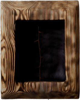 A carved recess. A chamber of shadow. Kadokage is a hand-shaped wooden object made from solid pine — hollowed out, charred, brushed, and finished with deep purpur pigment and linseed oil. Its surface bears the memory of fire; its grain shifts between light and dark.