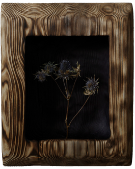 Each frame is unique, made to hold a single dried plant or branch. Not just a display, but a moment: the natural held by the crafted, the fragile held by the weight of wood.