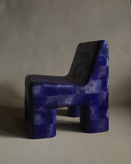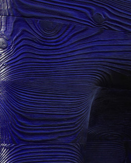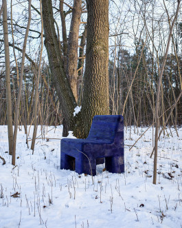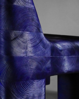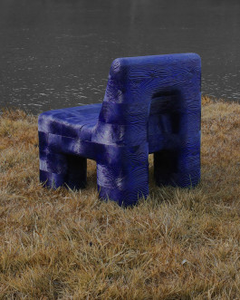 Treow is an Old English word for tree— but also for trust. This dual meaning captures the essence of the Treow Lounge Chair: a piece that stands between nature and human gesture. Made from solid pine beams, hand carved, burned, brushed and finished with french ultramarine pigments and linseed oil. Inspired by the quiet presence of fallen trees in the forest, Treow offers a tactile, grounded experience. Its generous, rounded form invites rest, while its surface tells a story of time, texture, and transformation.